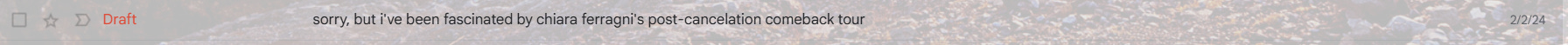 As was first reported in December 2022 by Domani, something was slightly rotten in the state of Ferragni, for what was promoted as a purely—or at the very least, partly—philanthropic endeavor was seemingly little more than a marketing scheme, as it appeared the hospital had received a single one-off €50,000 donation, in contrast to the significantly higher proceeds from the Balocco-Ferragni campaign. Now I don’t know if you guys are up to date on your legalese, but in certain circles, this is sometimes called fraud. And wouldn’t you know it: the Italian state decided to have a little looksie.4