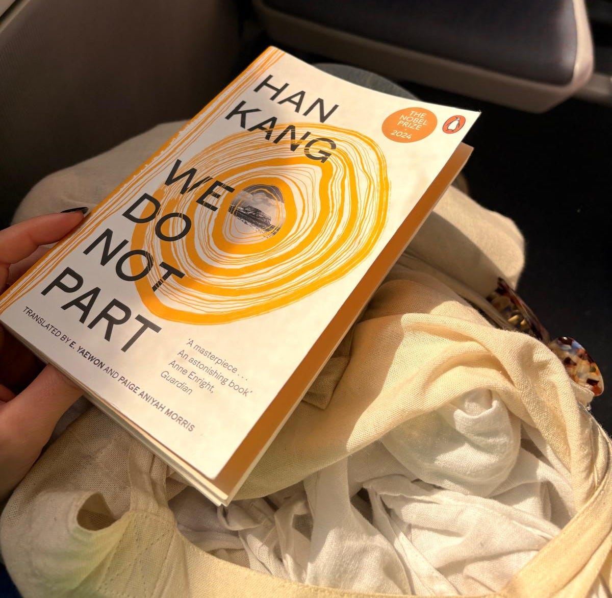 In We Do Not Part, Kang uses history in the same way some authors utilize homes as their own characters and plot devices (apropos of nothing, I’m currently reading Brideshead Revisited). The lines between generational and national trauma are blurred, helping to explain why Inseon, our protagonist Kyungha’s eccentric friend, lives a secluded life in Jeju Island and why she has chosen the documentary subjects she’s completed thus far and why she counts a small bird, Ama, as her only companion. Why following a terrible injury, she asks Kyungha to urgently make the long trek from Seoul down to Jeju and save Ama.