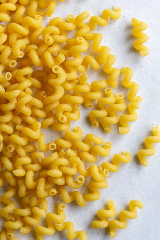 Salads and cavatappi. What if I told you I had been subsisting on a steady diet of pasta and bread for a month and a half before this week? That micronutrients had no place on my plate of deliciously beige-adjacent food? I do not, to be clear, feel bad about this. There is no guilt to speak of. But after considering the unappealing and frankly, increasing, possibility of scurvy, I decided this week to stop by the grocery store for a little thing called a vegetable. I hate when you make a healthy choice and immediately feel its positive effects, by the way — my body's smug little I told you so after I had my first salad of 2024 was almost too much to bear. Still, the noble cavatappi, my go-to pasta of the year so far, deserve an honorable mention: