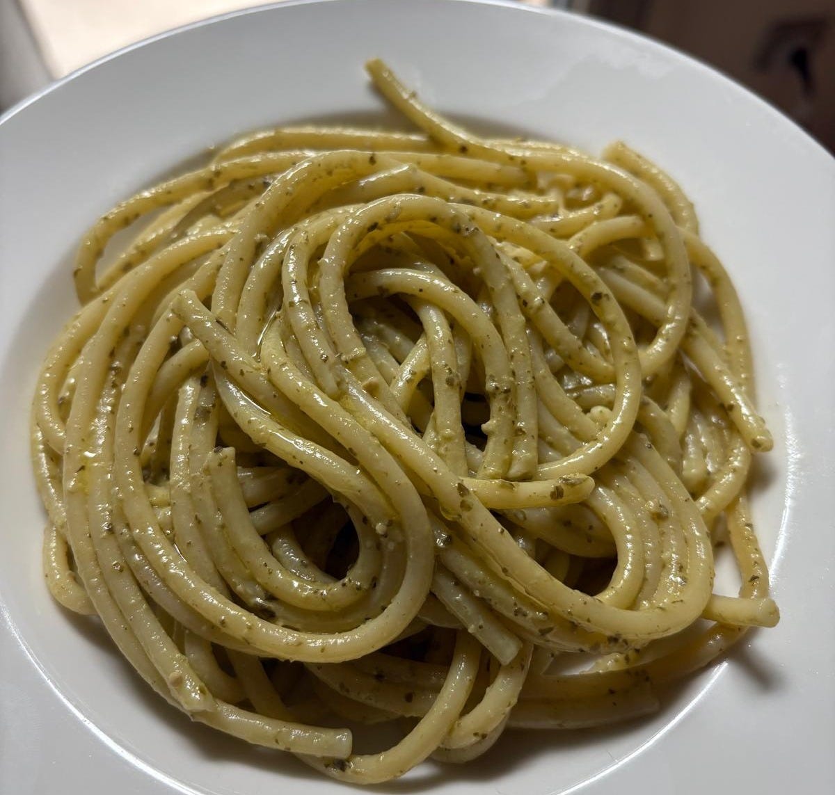 My friend, maybe noticing the sudden flush coloring my cheeks and fearing for her safety, indulged me, and there it was, on the well-stocked, beautiful pasta wall, a sight for sore and hungry eyes, my one true love: the humble De Cecco buc. I bought a couple of packets, a jar of vegan pesto, and walked (galloped) home. Made myself a frankly grotesque amount of pesto bucatini, took approximately 37 photos of it, and texted the happy news to everyone I knew. This process has been repeated every Sunday afternoon for the last month. It has made me unspeakably happy.
