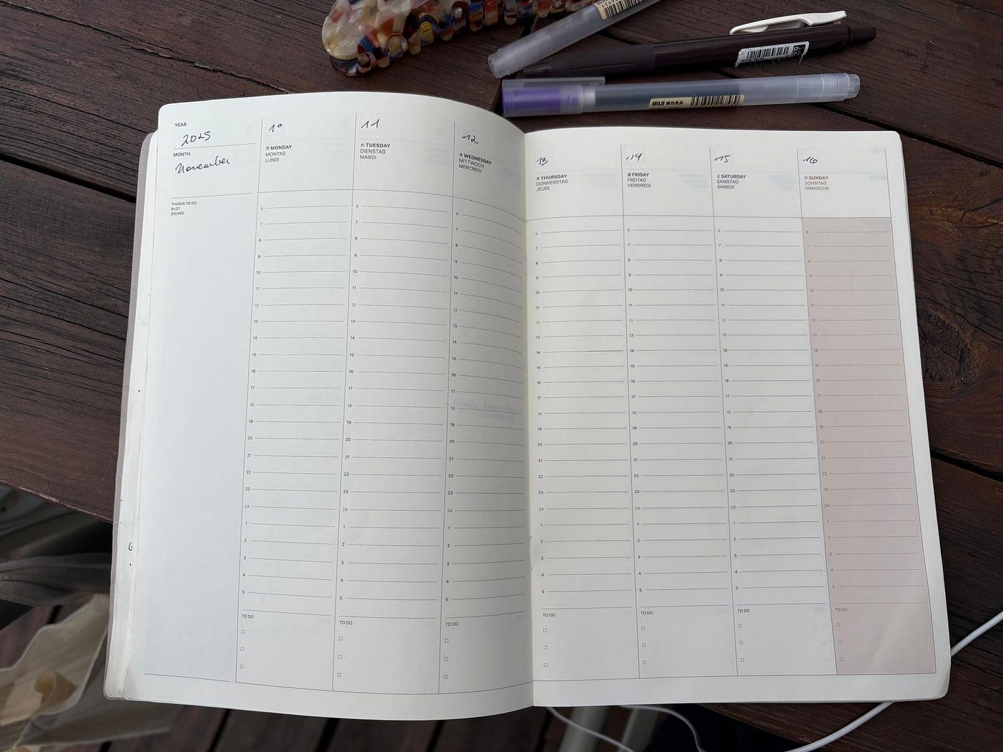 While at McNally, I think I got Annie Ernaux’s A Simple Passion and Danzy Senna’s Colored Television, both of which I loved and wrote about in my latest reading recap. After I paid, though, I did that thing when you don’t really leave a place after exchanging goods for payment, and in my little post-Apple Pay strolling I found a weekly planner from Laconic that immmmediately called out to me. It’s thin and well laid out and the exact shade of greige that they buy in bulk for new buildings in gentrifying neighborhoods. Anyway, my best friend generously bought the $6 planner for me, and it’s honestly one of the best gifts I’ve ever gotten.3