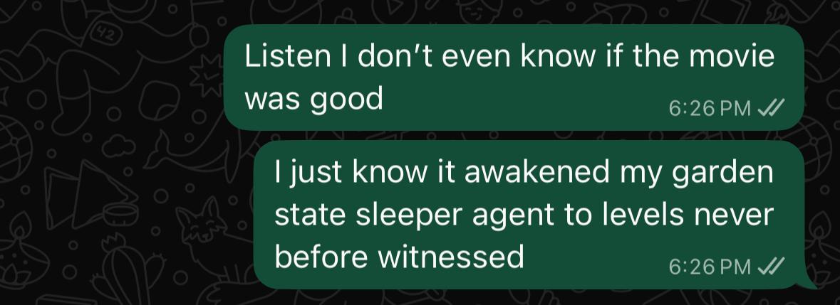 Was it good … please … what an irrelevant question. This film awakened things in me that could only be cured by a late-night drive to Wawa, windows down as I speed down Route 38 so my eyes can really absorb the roadside billboards’ fluorescent lights.
